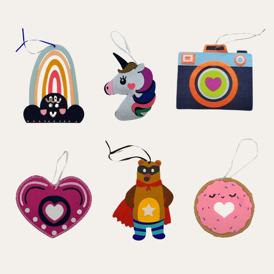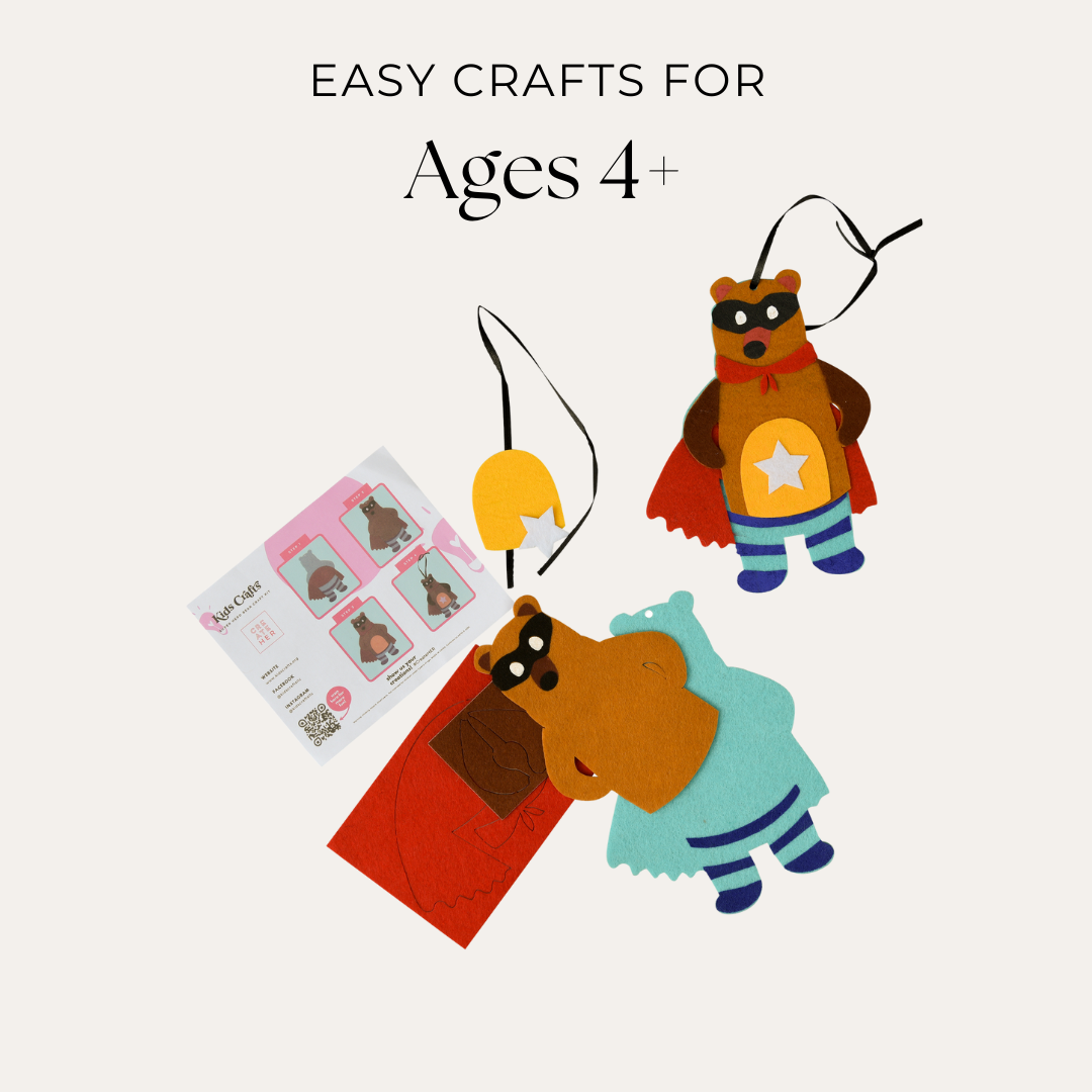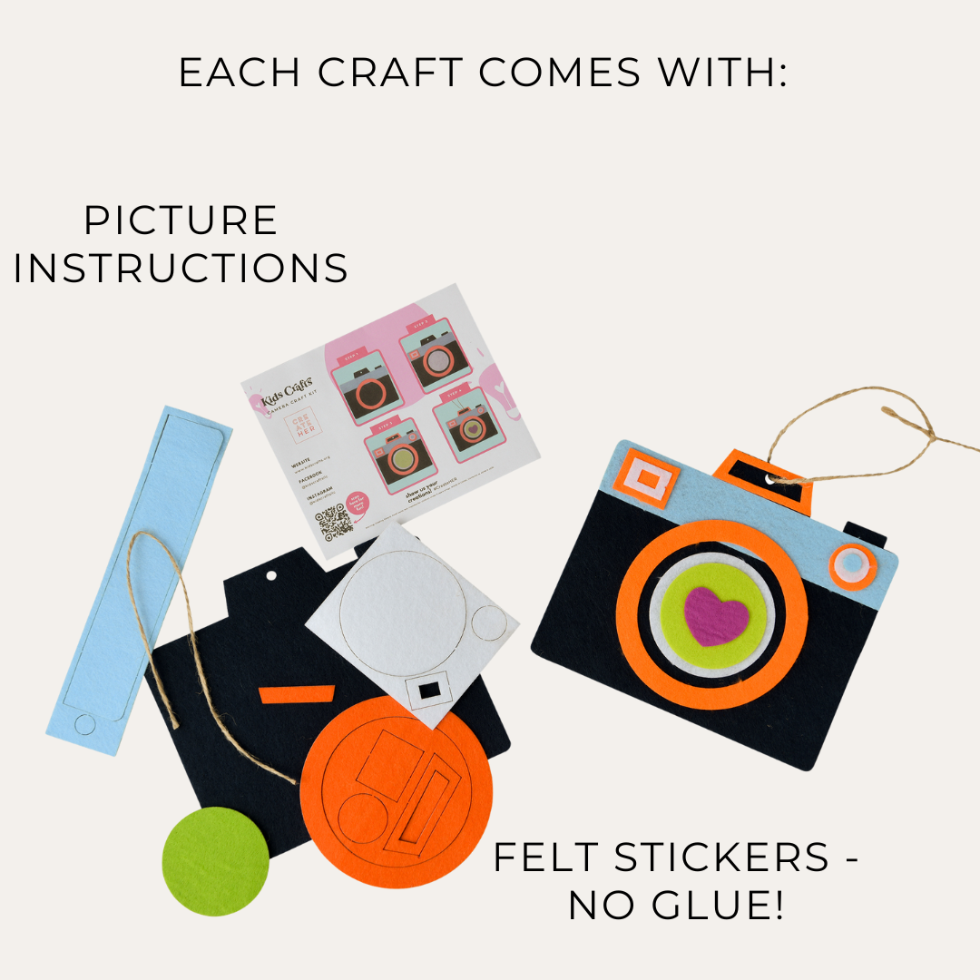 Each craft is thoughtfully designed with bright, engaging themes such as a Rainbow, Unicorn, Camera, Heart, Superhero Bear, and a fun, colorful Donut. The kit provides a mess-free crafting experience—no sewing, glue, or complicated steps are required, so it's easy enough for most children to complete on their own.